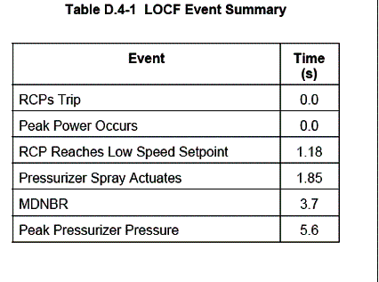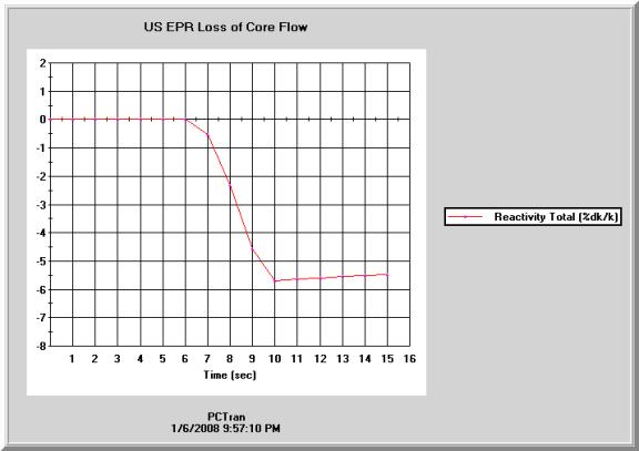 The loss of core flow transient is initiated simply by trip all pumps. Flow coastdown, reactor trip and reactivity change are very much similar to the Areva document. One exception is the RC pressure rise before reactor trip is very limited.