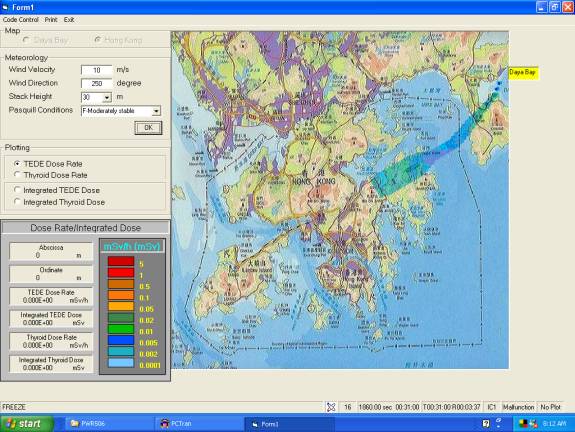 Hypothetical radiological release from Guangdong nuclear plant in Daya Bay, China plume effect to the Hong Kong territory emergency plan – Work performed for the Hong Kong Government by Micro-Simulation Technology of USA.