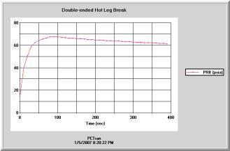 A turbine trip with bypass transient (TTWB) and a main steam line break (MSLB) inside containment bounding case were analyzed using PCTRAN/ESBWR for benchmark against the Design Document2. For TTWB, the Alternate Rod Insertion (ARI) is initiated that reduces the reactor power to about 60% with feedwater and steam bypass flow runback to about 40%. Loss of feedwater heating (and thus a greater enthalpy difference to that of steam) is the cause for more reduction in feed and steam flows than the power. The reactor dome pressure, drywell and suppression pool pressures and temperatures are compared in the following figures. They are generally in good agreement.