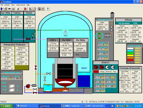 The radiation monitors’ readings and release source terms of noble gases, iodine and molten-fuel heavy isotopes are displayed in each compartment.