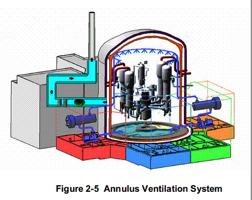 The containment building and shield building are separated by an annular space that is maintained at sub-atmospheric pressure by the Annulus Ventilation System (AVS). The AVS is a safety-related system used to filter any leakage through the primary containment, in the event of both design basis and severe accidents, prior to releasing it from the plant stack. The AVS ensures 2x100% extraction capability and consists of a high efficiency particulate air (HEPA) filters and charcoal absorbers in series with air handling equipment.
